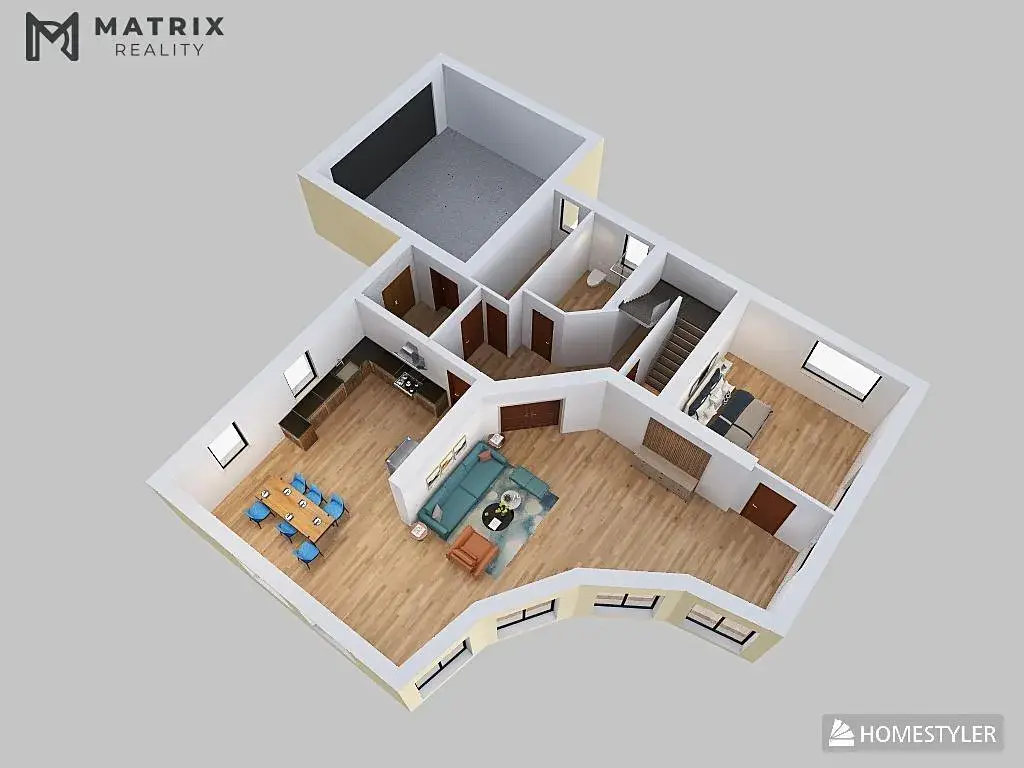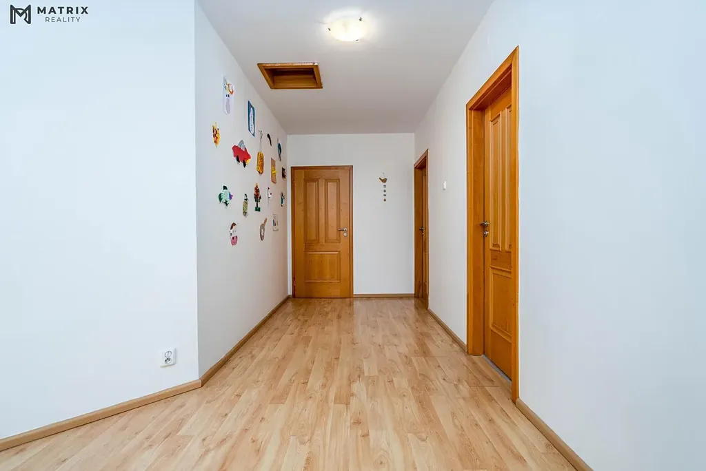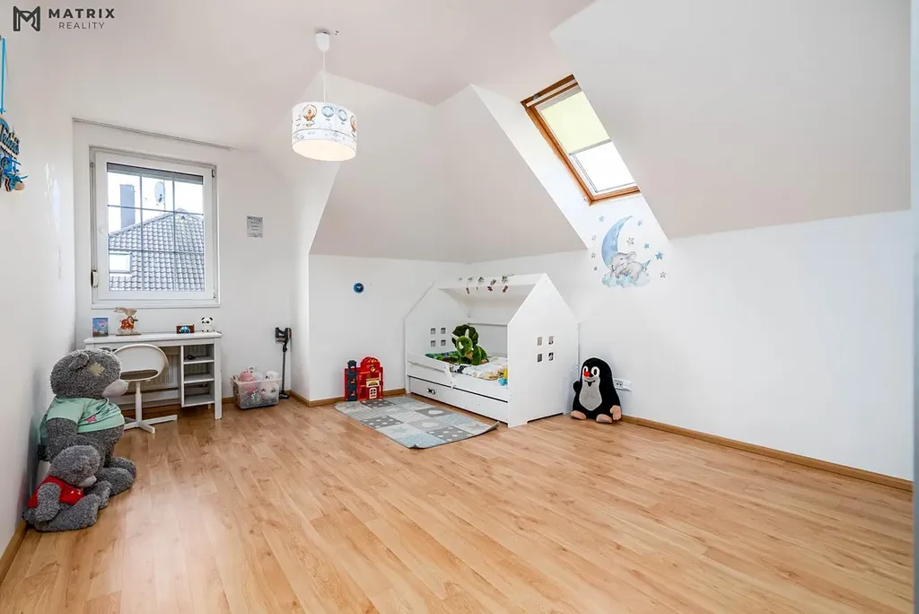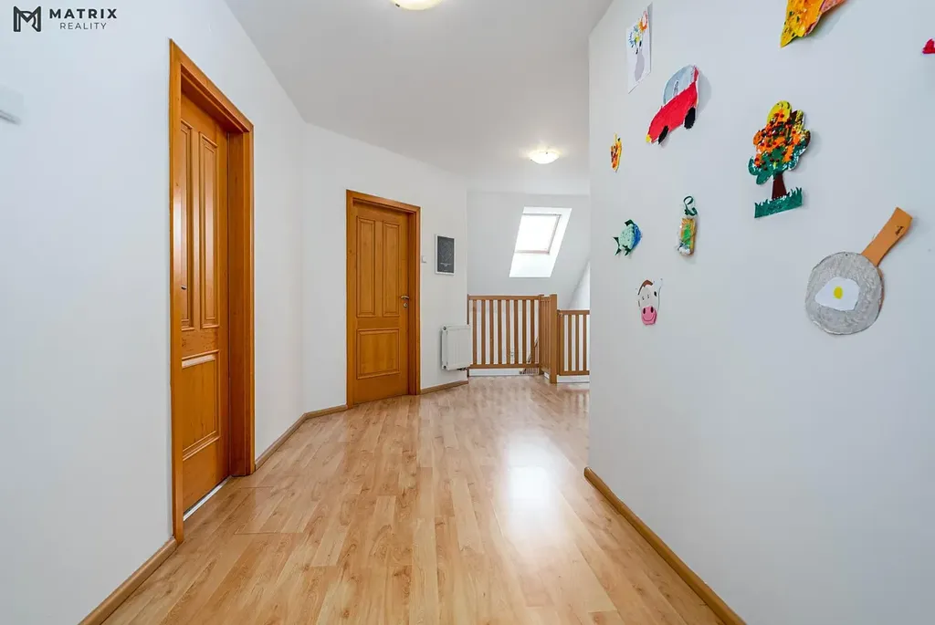 Dispoziční řešení domu je navrženo s důrazem na praktičnost i komfort. Dům má dvě nadzemní podlaží, celkem 7 pokojů a 3 koupelny, díky čemuž nabídne pohodlné zázemí i pro větší rodinu, případně pro kombinaci bydlení a práce z domova. Hlavní obytný prostor plynule navazuje na venkovní část domu, což přirozeně rozšiřuje užitnou hodnotu celé nemovitosti.