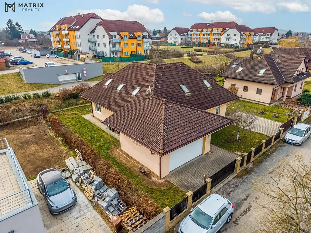 Dům byl kolaudován v roce 2014 a je ve velmi dobrém technickém stavu. Celková užitná plocha činí 294 m and sup2;, celková výměra pozemku je 743 m and sup2;. Součástí domu je rovinatá zahrada o ploše 542 m and sup2;, zastřešená terasa a dvojgaráž, doplněná o další parkovací možnosti na pozemku i před domem.