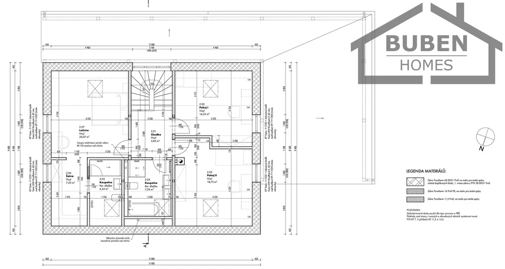 Přízemí domu tvoří vstupní chodba, samostatné WC, šatna, technická místnost, prostorná obývací hala s kuchyní se spíží, se vstupem na terasu a pracovna. V patře jsou vybudované tři prostorné ložnice (jedna se samostatnou koupelnou s WC - sprchový kout) a druhá koupelna s WC (vana, sprchový kout).