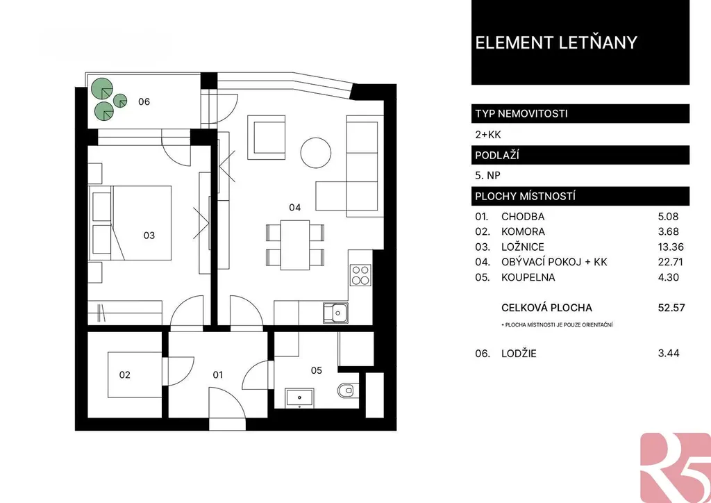 Prodej novostavby 2kk 56m2 P9 Letňany, ul. Tupolevova, balkon, nezařízen.