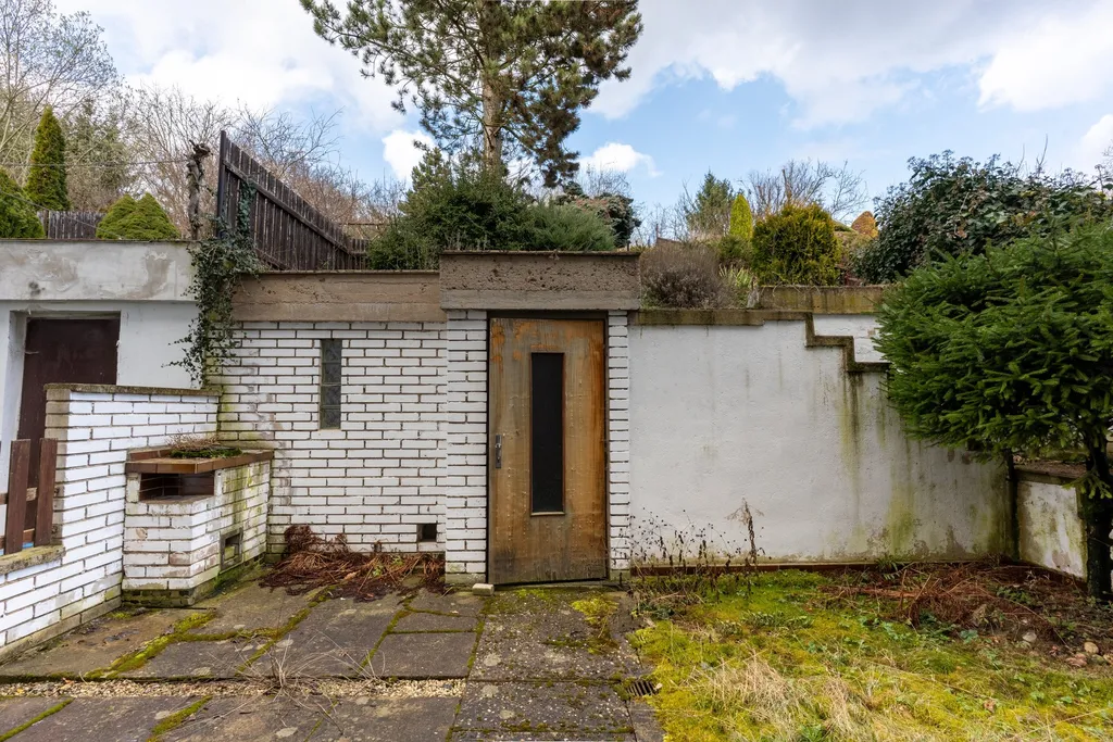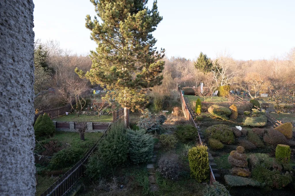 V přízemí se nachází další bytová jednotka 1+1 s vlastní koupelnou a toaletou, přes kterou se vchází do kaskádovité zahrady o velikosti 275 m². Součástí zahrady je také menší venkovní stavba zapuštěná do svahu o velikosti 8 m².