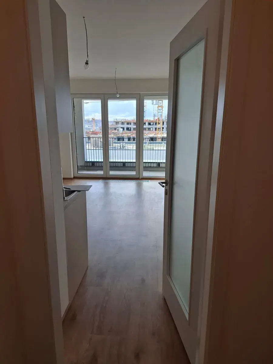 Zcela nový, dosud nebydlený, světlý byt, situovaný ve 4.patře nového rezidenčního domu s výtahem. Byt sestává z předsíně, koupelny se sprchovým koutem a WC a pokoje s kuchyňským koutem a vstupem na lodžii. Vybaven je novou kuchyňskou linkou s vestavěnou sklokeramickou varnou deskou, elektrickou troubou, mikrovlnnou troubou a myčkou. Možnost pronájmu garážového stání a sklepa. Dobré spojení ke stanici metra B Hloubětín, zastávka tramvaje kousek u domu.