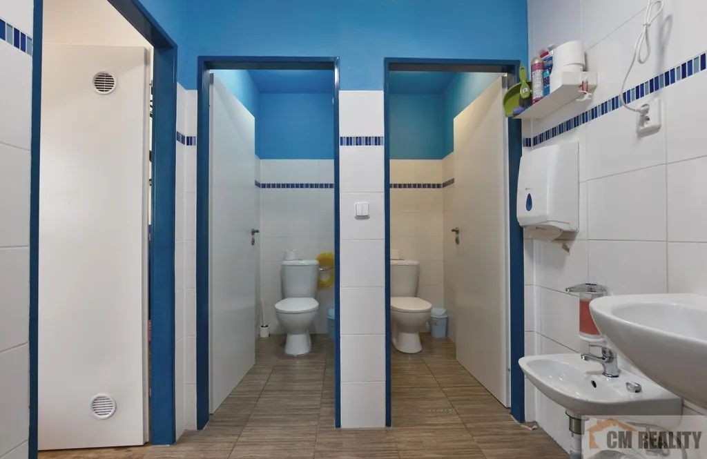 Z chodby je vstup do kuchyně, samostatného WC a hlavní místnosti. Na hlavní místnost navazuje koupelna se sprchovým koutem a dvěma toaletami.