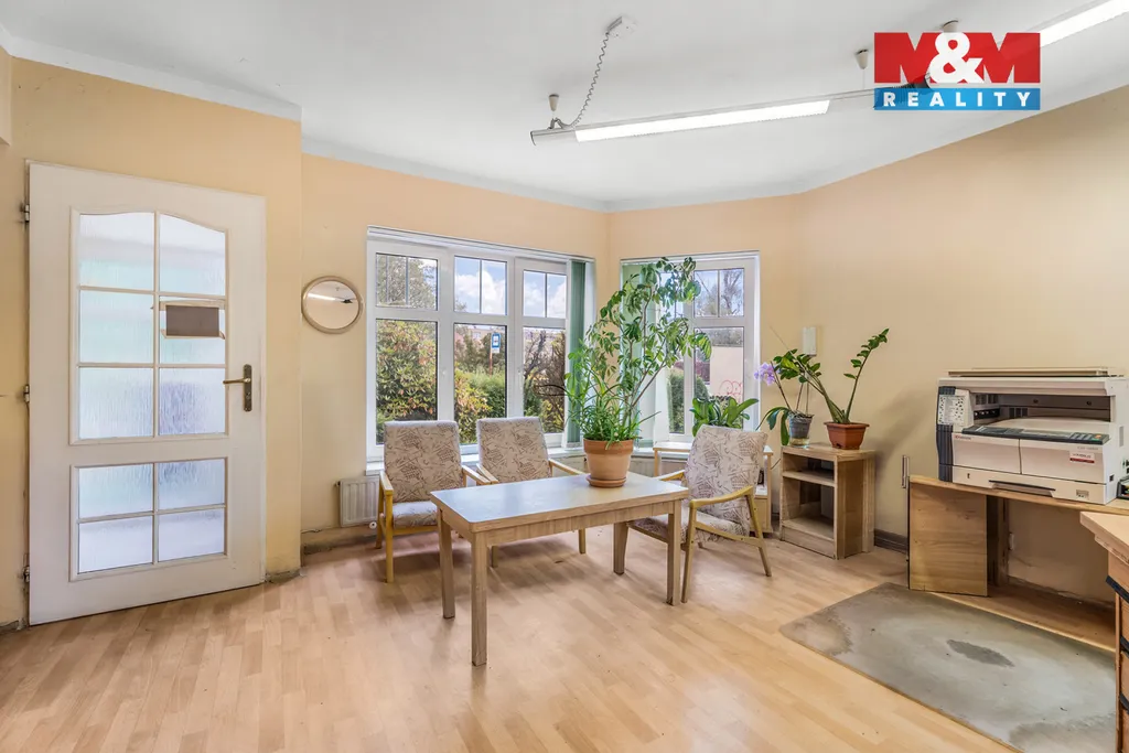 Kancelářské prostory k pronájmu – přízemí rodinného domu se samostatným vstupem, Králův Háj (Liberec V – Kristiánov). Cihlová budova, užitná plocha 95 m², dispozice: dvě místnosti + kuchyňka a sociální zázemí.