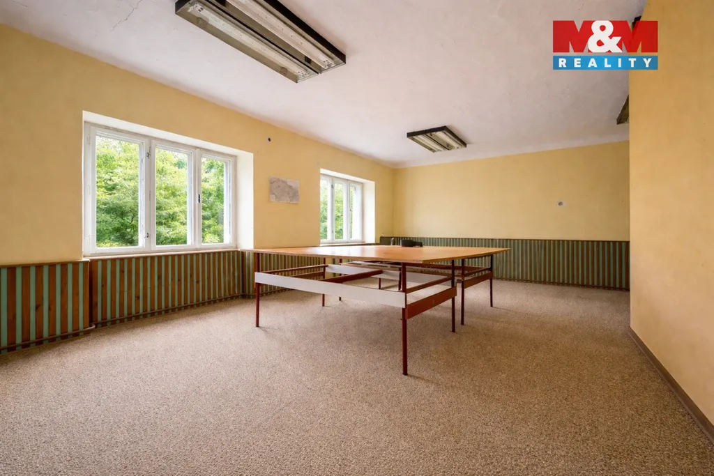 Budova disponuje velkými a světlými místnostmi, které poskytují dostatek prostoru pro různé úpravy dle představ nového majitele. Součástí nemovitosti je také garáž, parkovací stání přímo u domu až pro 4 automobily, sklepní prostory a velká půda, která nabízí ideální možnost vybudování podkrovních bytů nebo dalších obytných prostor.