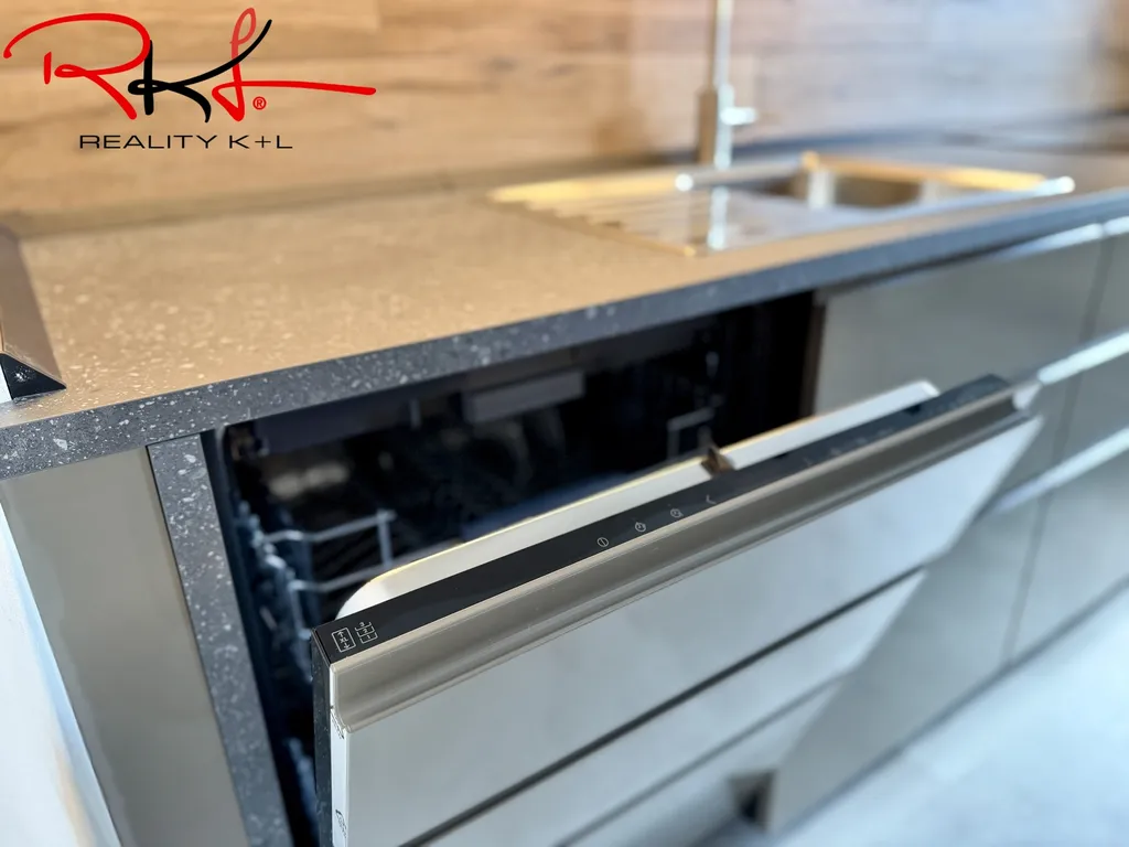 Nová kuchyňská linka vybavena novými moderními spotřebiči (trouba, varná deska, digestoř, myčka nádobí. lednice), jídelní stůl se židlemi. Dále pokračujeme do velmi vkusně designově vybaveného obývacího pokoje s výhledem do zeleně. Nová koupelna s pračkou a toaleta.