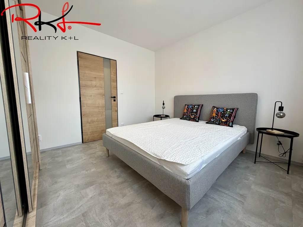 Následuje vstup do zařízené ložnice s novou postelí s nočními stolky a skříní pro uložení velké části Vašich věcí.