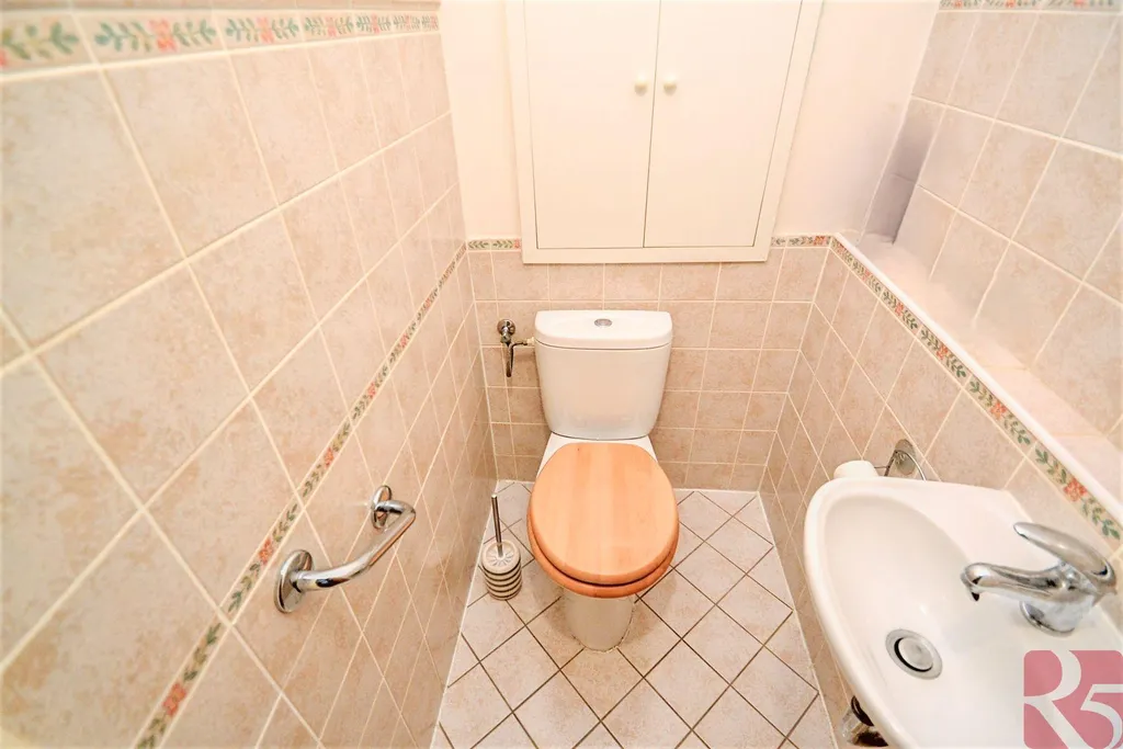 Koupelna je vybavena sprchovým koutem a naleznete v ní i pračku, toaleta je řešena samostatně.