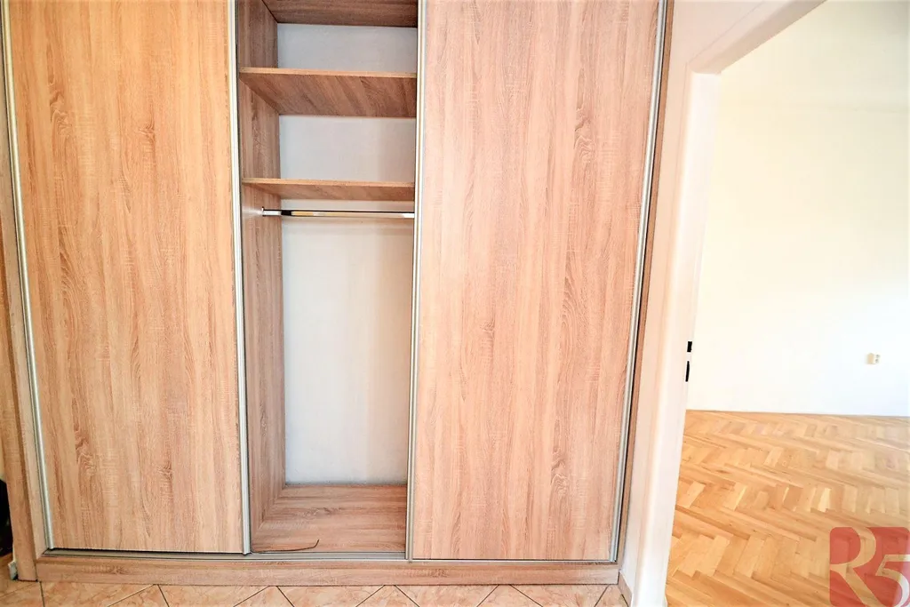 V chodbě naleznete praktickou novou vestavěnou šatní skříň, která zajistí dostatek úložného prostoru.