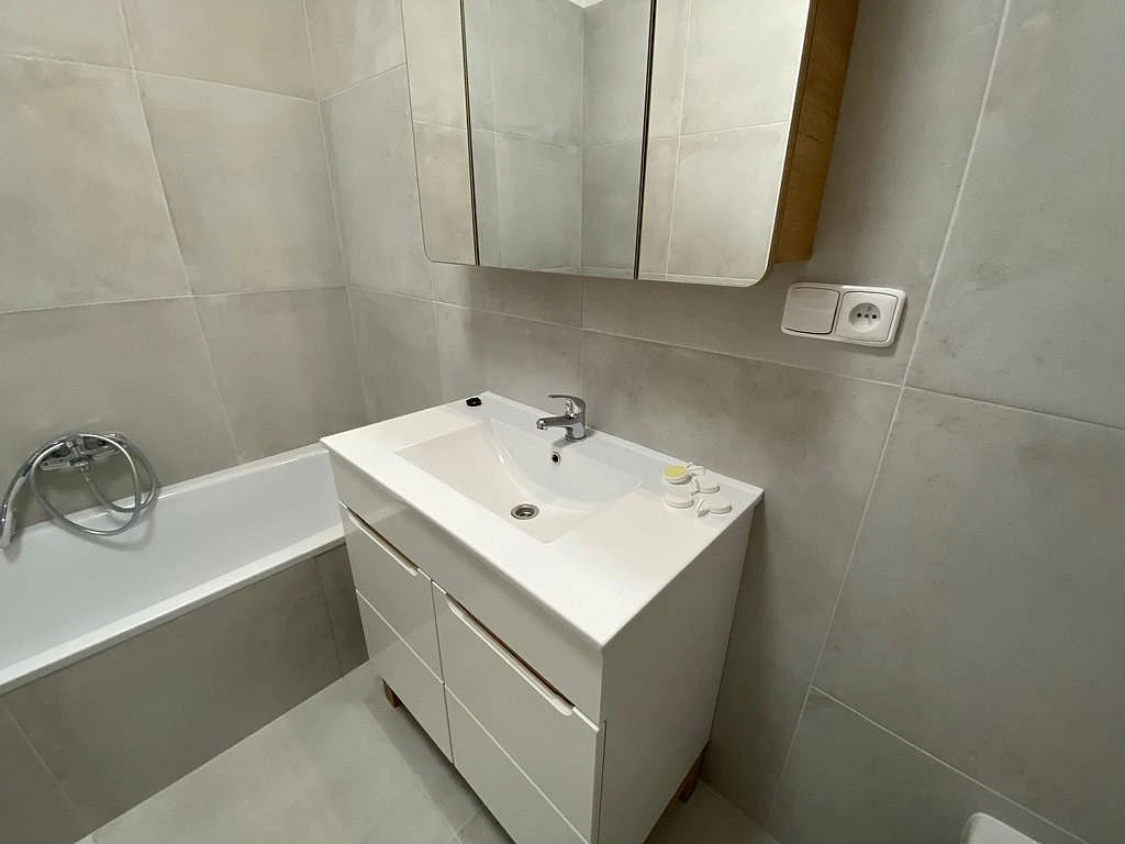 Byt je nabízen, mimo vybavenou kuchyňskou linku se spotřebiči, bez vybavení.