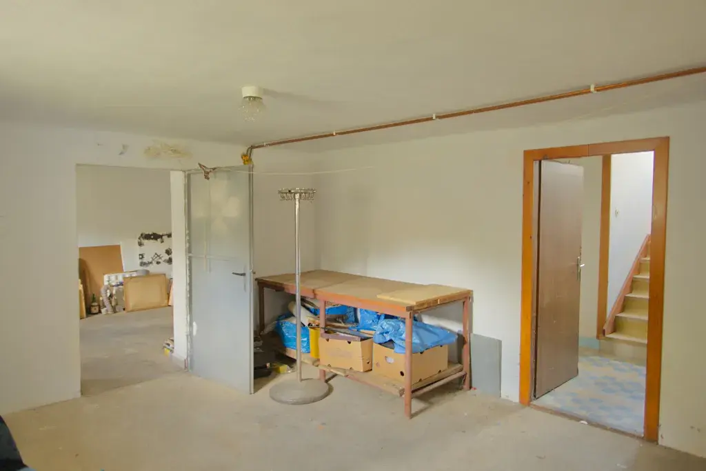 V přízemí se nachází garáž(18 m2), sklad(13 m2), prádelna(4,2 m2), sklad (4,9 m2), vodárna(2,3 m2), zádveří a chodba (13 m2).