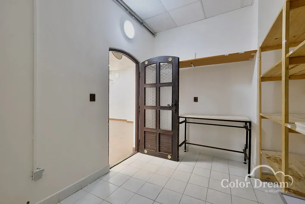 Budova nabízí nejen samotný prostor pro prodej, ale i 2 sklady a sociální zázemí. Součástí vybavení jsou 2 klimatizační jednotky, plynový kotel, WC, umyvadlo a bojler na teplou vodu. Před domem je místo na zaparkování kol a možnost zaparkovat 3 auta.