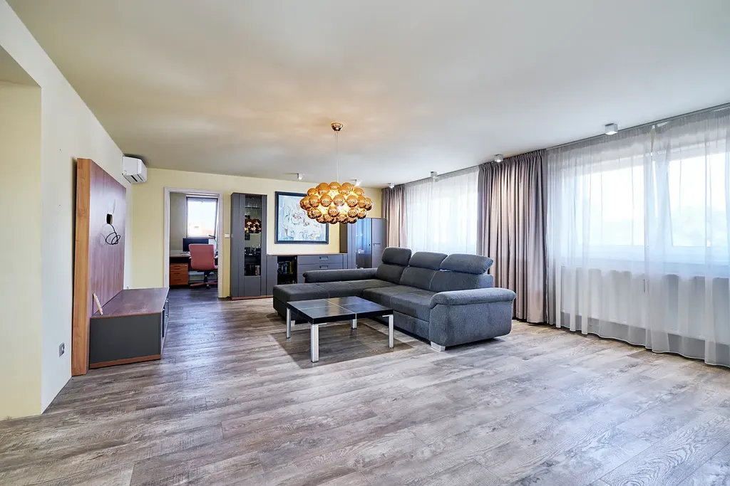 Ve 2. patře je byt správce (majitele) 172 m2. Byt má 7 obytných místností a kuchyň, včetně dvou klimatizací a dvou skladů na půdě 16 m2. Objekt je vhodný jak k obchodním účelům, tak i jako výborná investice do budoucnosti.