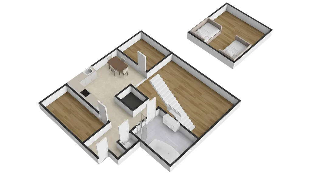 Vzdušný a velmi příjemný interiér je plně vybaven vkusným nábytkem i spotřebiči. K dispozici je velký obývací pokoj s pracovním koutem, kuchyňský kout s jídelnou, samostatná ložnice, obytná mistnost v podkroví, koupelna s vanou i sprchou, toaleta a vstupní chodba s vestavěnou skříní. Dřevěné prvky krásně podtrhují originalitu místa. Parkování je v ulici i okolí bezplatné.