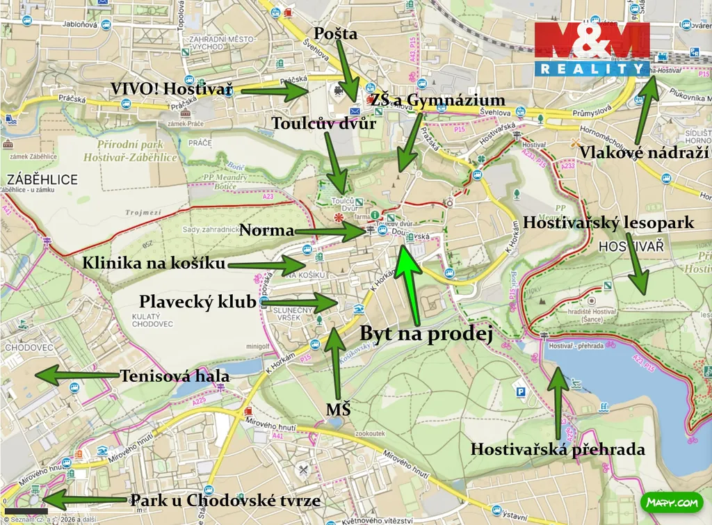 Nabízíme k prodeji velmi příjemný a prostorný byt o dispozici 3+kk s užitnou plochou 63 m², lodžií a sklepem, který se nachází v 1. patře udržovaného panelového domu s výtahem ve vyhledávané lokalitě Praha 15 - Košík. Tato lokalita je oblíbená především díky kombinaci občanské vybavenosti, množství zeleně a velmi dobré dostupnosti do centra Prahy. Byt prošel větší rekonstrukcí v roce 2024, která přinesla modernější a komfortnější bydlení. Byla vybudována nová koupelna s toaletou a sprchovým koutem, proběhla rekonstrukce kuchyně a zároveň byly částečně provedeny nové rozvody elektřiny. Dispozice bytu nabízí praktické a pohodlné bydlení pro rodinu, pár i jako investici k pronájmu. Obývací pokoj je propojen s kuchyňským koutem, což vytváří příjemný prostor pro každodenní život i setkávání s rodinou či přáteli. Další dva pokoje mohou sloužit jako ložnice, dětský pokoj nebo pracovna. Byt je v osobním vlastnictví a prodává se plně vybavený, což umožňuje okamžité nastěhování. Kontaktujte nás.