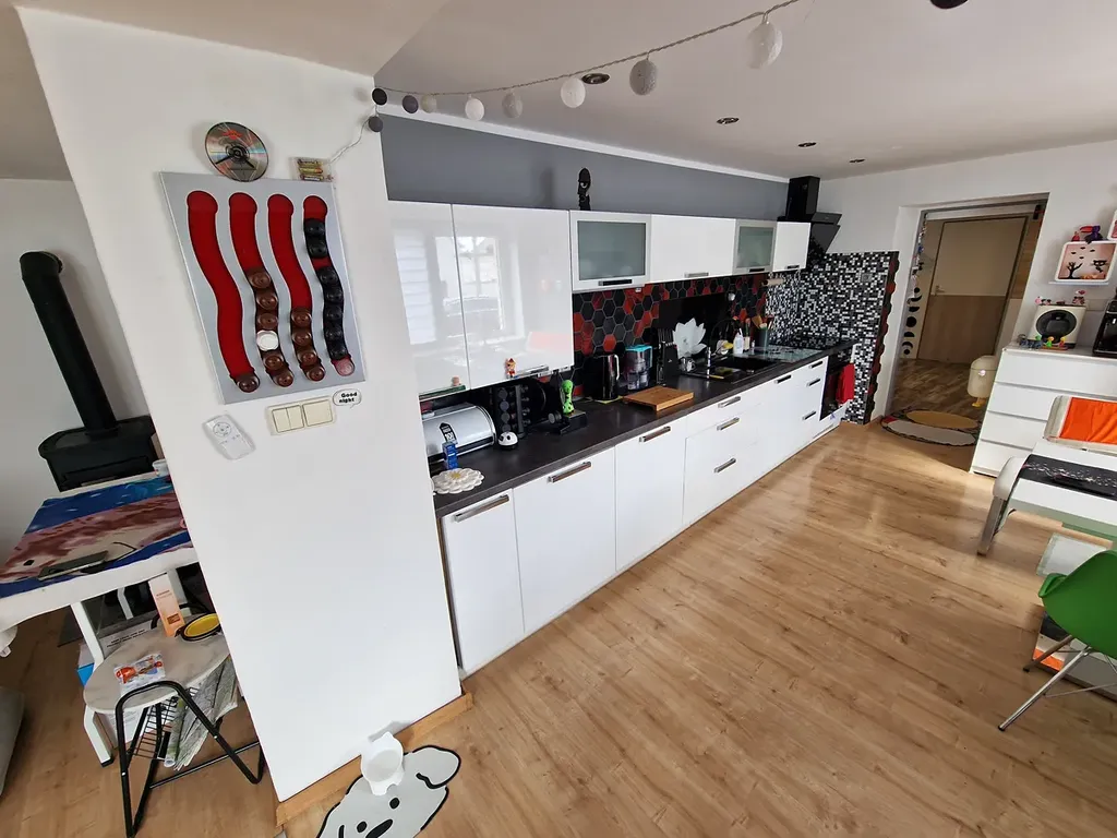 Srdcem domu je prostorný obývací pokoj s kuchyňským koutem o celkové ploše cca 59 m², který nabízí dostatek prostoru pro rodinný život. Dům disponuje 3 dalšími pokoji, koupelnou a technickým zázemím.