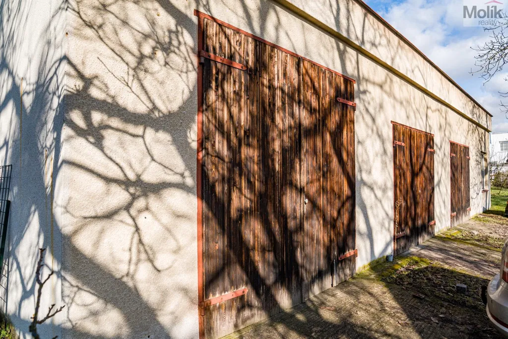 Dále k domu náleží samostatná velká garáž se třemi vjezdovými vraty, která nabízí prostor pro parkování několika aut nebo prostornou dílnu. Je do ní zavedena elektřina (220 V i 380 V).