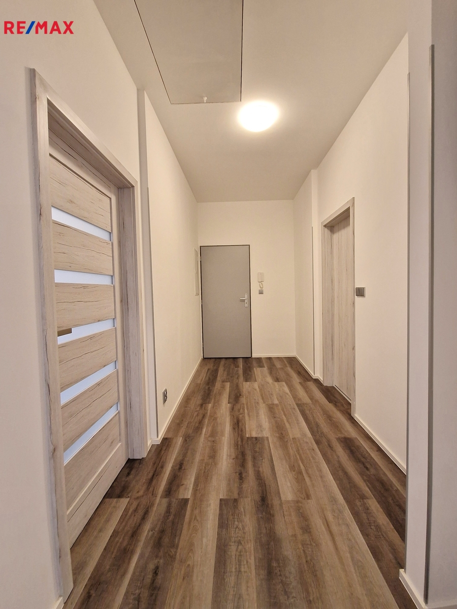 Byt tvoří vstupní předsíň (7,6 m2), ložnice (10,5 m2), obývací pokoj + kk (21,5 m2), pokoj (14,3 m2) a koupelna se sprchovým koutem, umyvadlem a wc (8,1 m2). Moderní komfortní kuchyňská linka je vybavená myčkou, ledničkou s mrazákem a digestoří. Dveře i obložkové zárubně jsou v dekoru dřeva, střešní okna jsou kombinace dřevo/plast. Byt je vytápěn tepelným čerpadlem (vzduch/vzduch) a podlahovým topením (podlaha vinyl a dlažba). Na předsíni je umístěný elektrický kotel, ohřev vody zajišťuje bojler umístěný v koupelně. Po půdních výsuvných schodech, umístěných v předsíni se dostáváme do půdního prostoru, který představuje další velkorysé možnosti využití. Při rekonstrukci byl kladen velký důraz na protihlukovou izolaci – protihlukový sádrokarton, PUR, kročejová podlahová izolace.