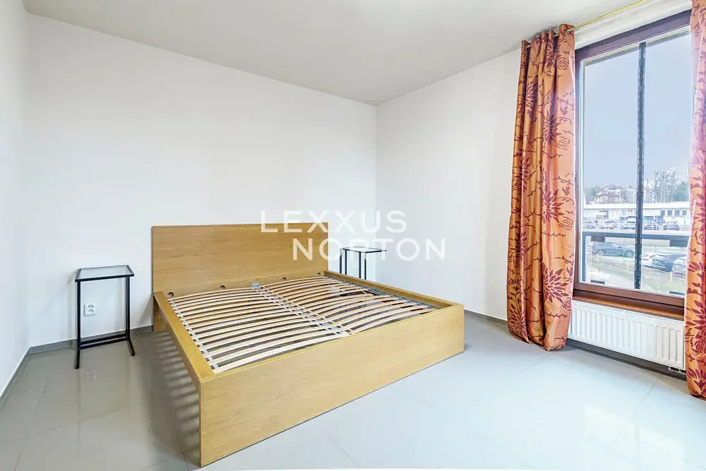 Byt nabízí k užívání vstupní chodbu, obývací pokoj s kuchyňským koutem, ložnici, koupelnu a samostatnou toaletu a nabízí příjemný výhled do klidného vnitrobloku. K bytu je možné si pronajmout garážové či venkovní parkovací stání.