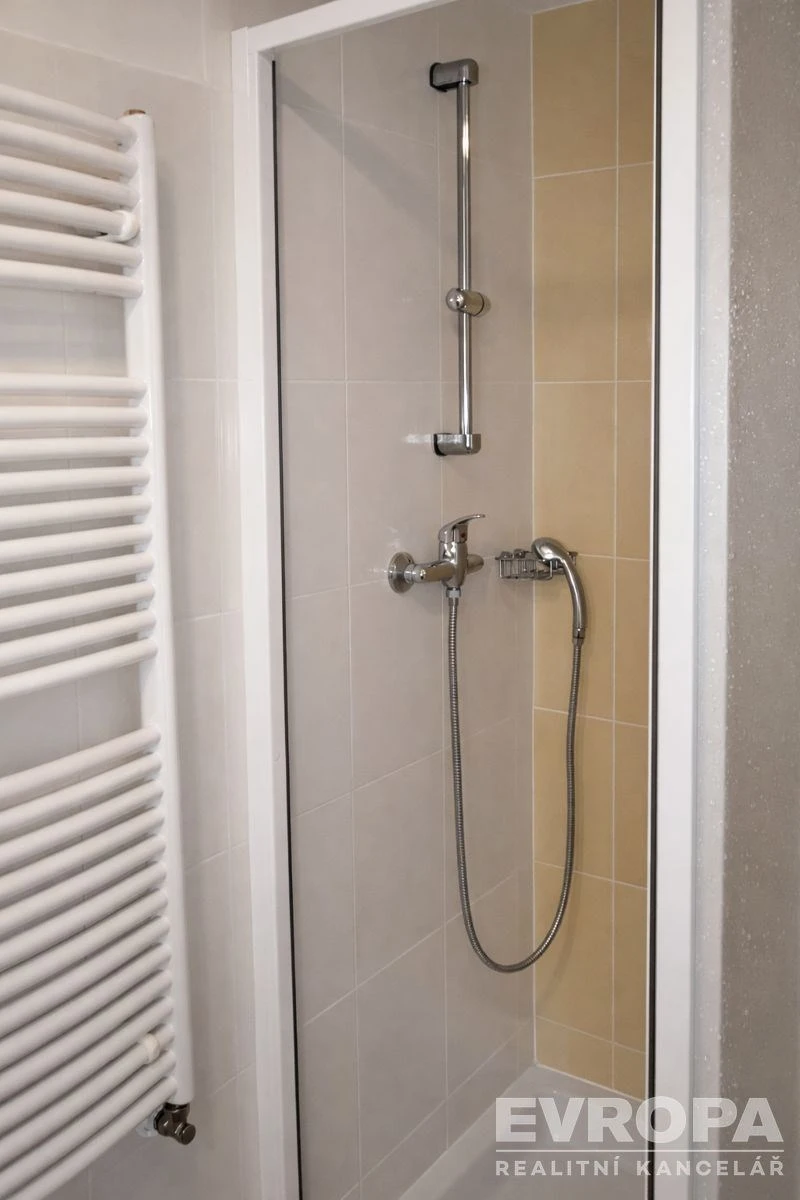 Prostor je s kuchyňským koutem (kuchyňská linka, el. dvojvařič, lednice), koupelna se sprchovým koutem a toaletou, provedená v čistém a moderním stylu. Na podlahách je dlažba, plovoucí podlaha. Bezpečnostní dveře, internetové připojení, okna jsou orientována do klidného vnitrobloku, který je chráněný bez přístupu z ulice. Prostor je dobře dispozičně využitelný a díky světlým podlahám a neutrálním tónům působí vzdušně a příjemně.
