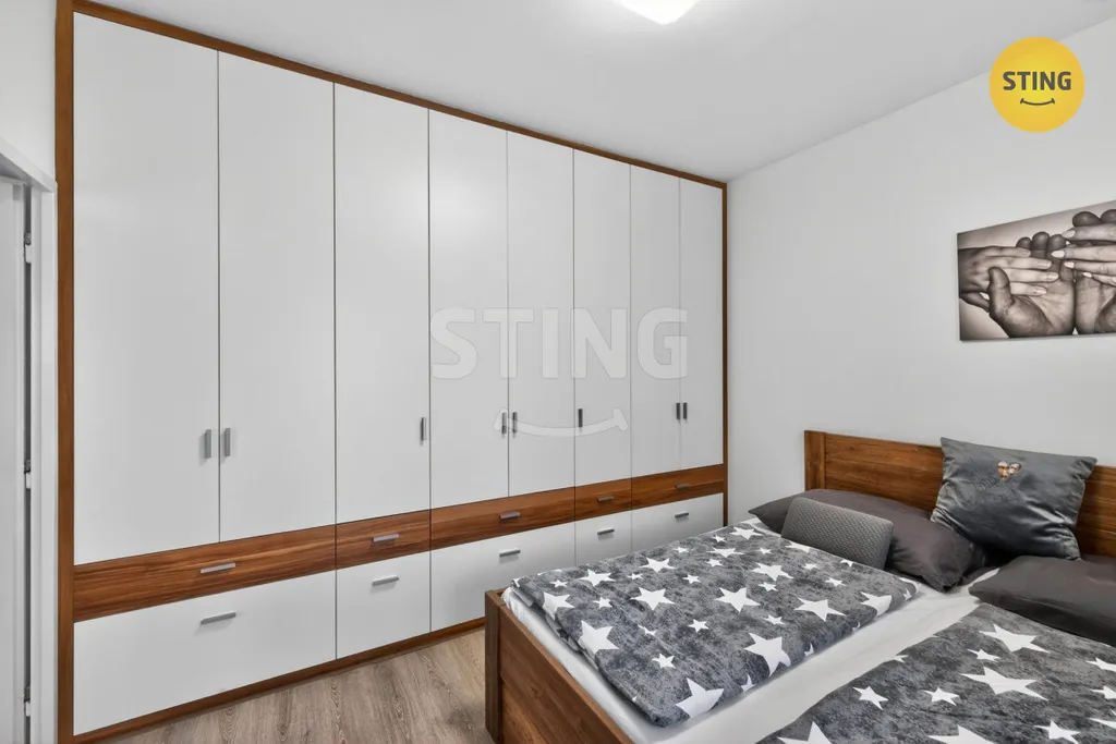 Dispozice bytu nabízí prostorný obývací pokoj se vstupem na zasklený balkon, ideální pro relaxaci, a dva samostatné, neprůchozí pokoje. Kuchyně je vybavena moderními spotřebiči. Koupelna disponuje sprchovým koutem, toaleta je oddělena. Praktickou stránku bydlení doplňují vestavěné skříně na chodbě i v pokojích, které zajistí dostatek úložného prostoru. K bytu náleží sklepní kóje.