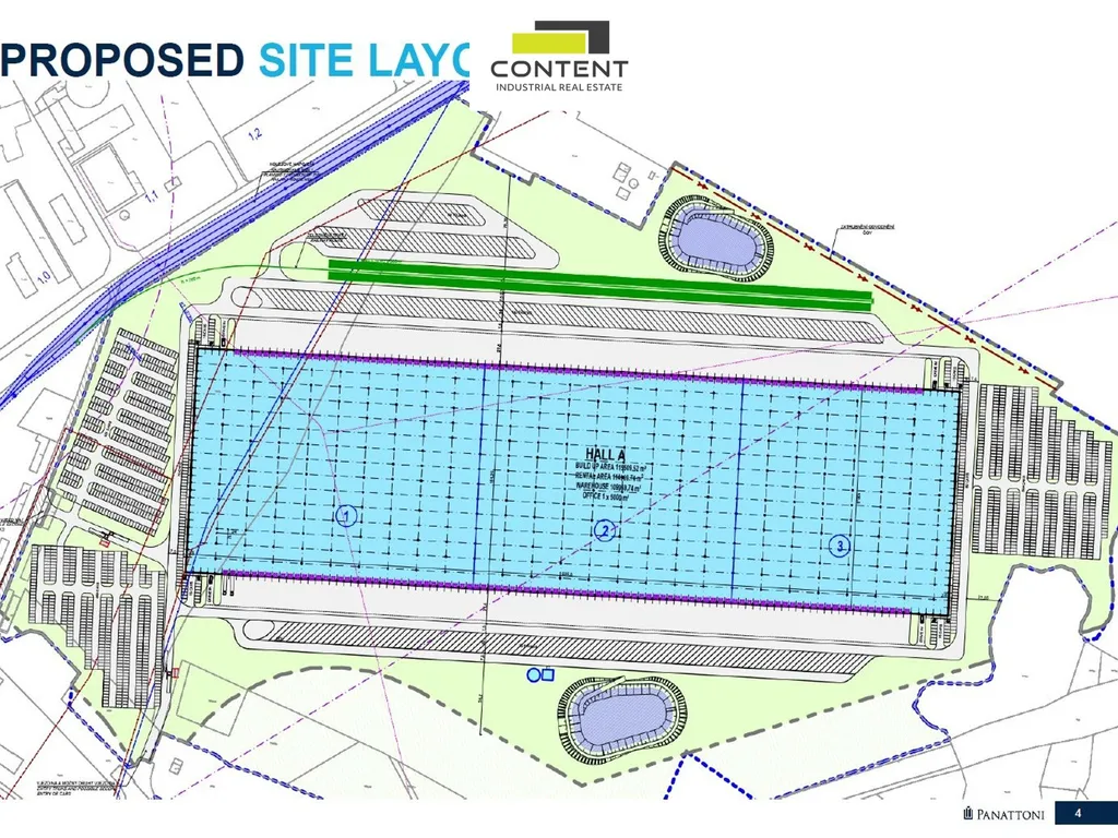 - nové skladové nebo výrobní prostory s výměrou cca 20000 - 115500 m²,
