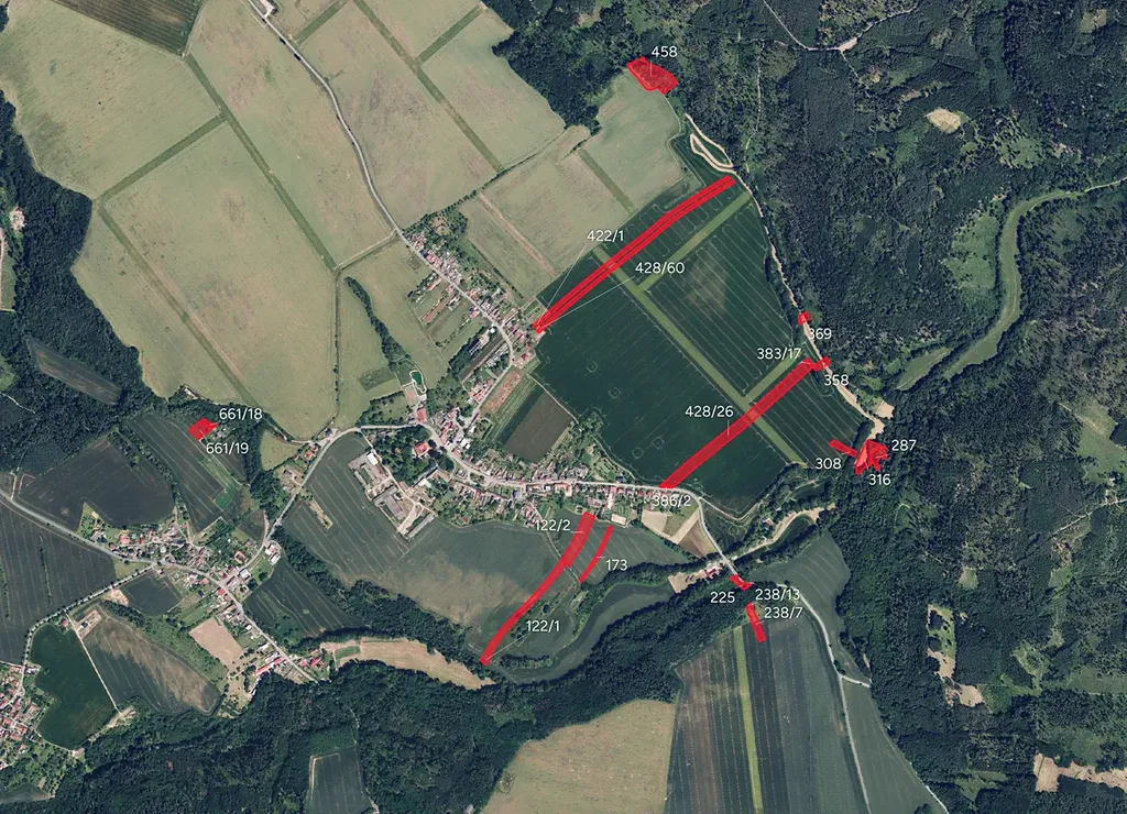 -> parc. č. 122/1, 122/2, 173, 225, 238/7, 238/13, 287, 308, 316, 358, 369, 383/17, 386/2, 428/26, 428/60, 661/18 a 661/19 (LV 47)
