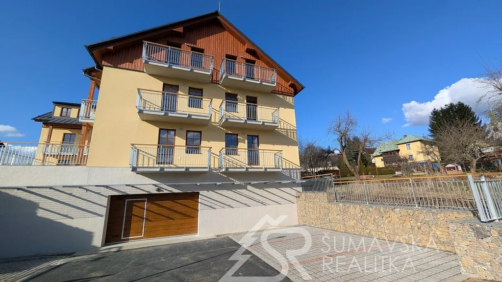 Moderní 2+kk s velkým balkonem a výhledem na Šumavu, parkování v domě, novostavba se zárukou.