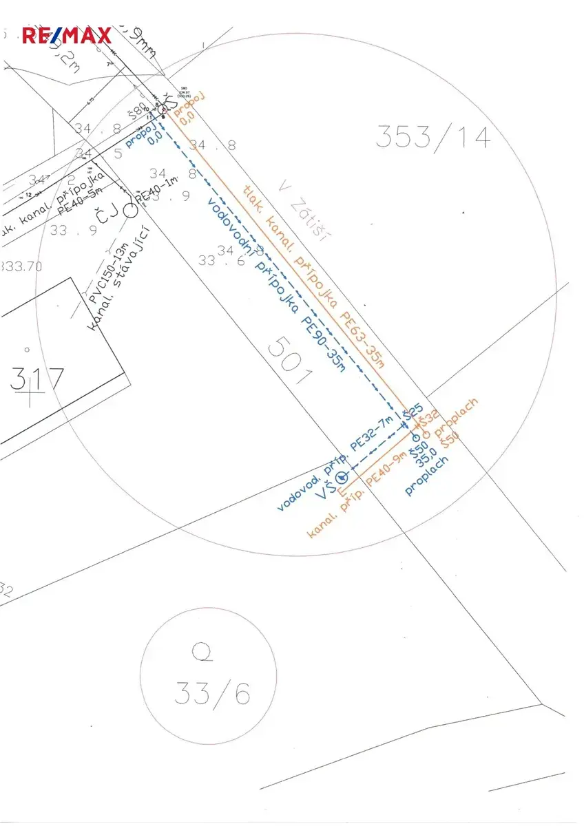 V rámci inženýrských sítí je již řešeno připojení elektřiny – byla podána žádost u ČEZ a do konce roku 2026 se počítá s připojením včetně vybudování pilíře na hranici pozemku. Pozemek je tedy prodáván jako připojený na elektřinu a náklady přípojky elektřiny jsou zahrnuty v ceně pozemku. Voda a kanalizace jsou aktuálně v řešení – existuje situační návrh napojení a probíhá komunikace s obcí ohledně finálního schválení. Samotnou vodovodní a kanalizační přípojku si vybuduje nový majitel na vlastní náklady.