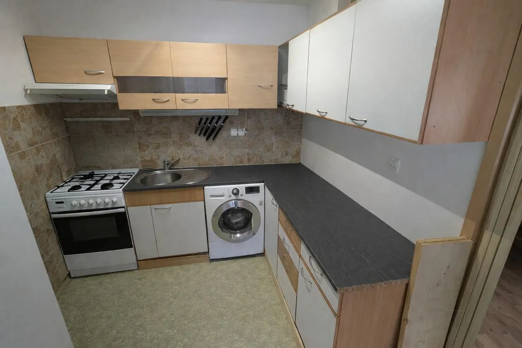 Kuchyň je vybavena hezkou kuchyňskou linkou a plynovými kamny s digestoří. V koupelně je vana s umyvadlem, WC odděleno.. Celá koupelna je obložena moderními obklady. Z pokoje je přístup na balkón, ze kterého je výhled na základní školu.