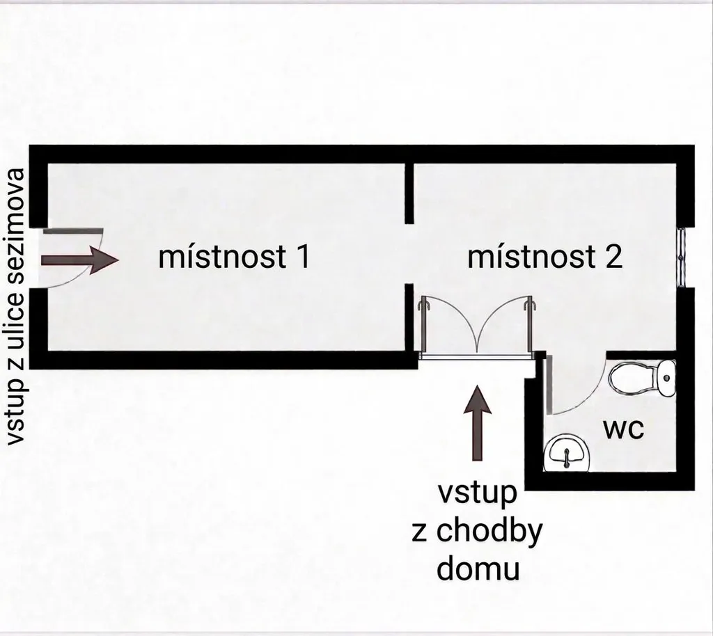 K dlouhodobému pronájmu obchodní prostor o velikosti 39 m s vlastním vstupem a prosklenou výlohou do ulice Sezimova 481/15, Praha 4 Nusle, přímo u náměstí Bratří Synků.