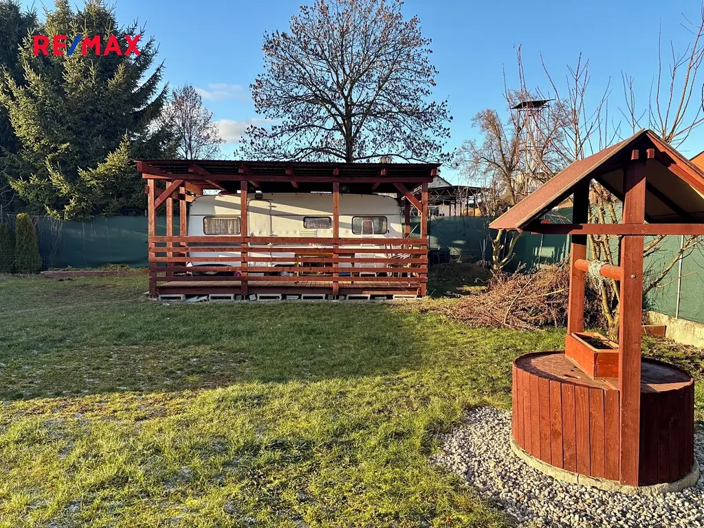 Pozemek je vhodný pro zahradničení, odpočinek či rekreační využití. Součástí pronájmu je dřevěná pergola a obytný přívěs, které poskytují potřebné zázemí.