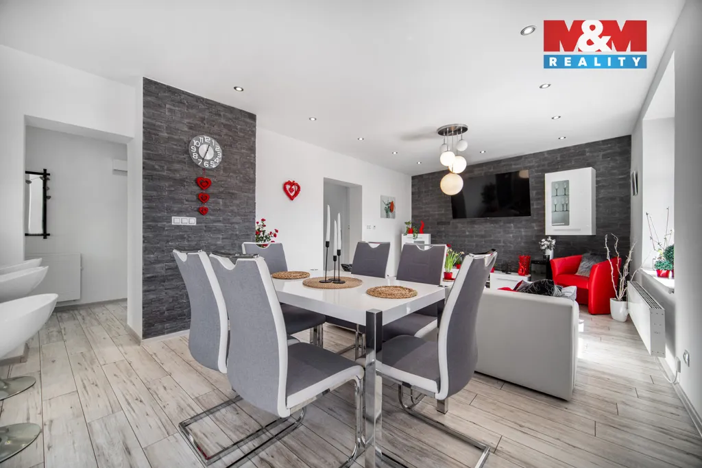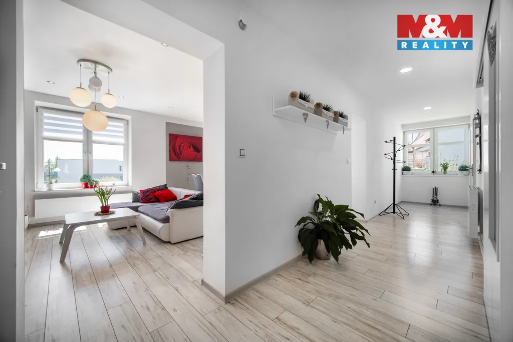 Součástí nemovitosti je kryté garážové stání propojené s dílnou a skladovací částí, stejně jako udržovaná zahrada poskytující dostatek soukromí a prostoru pro relaxaci.