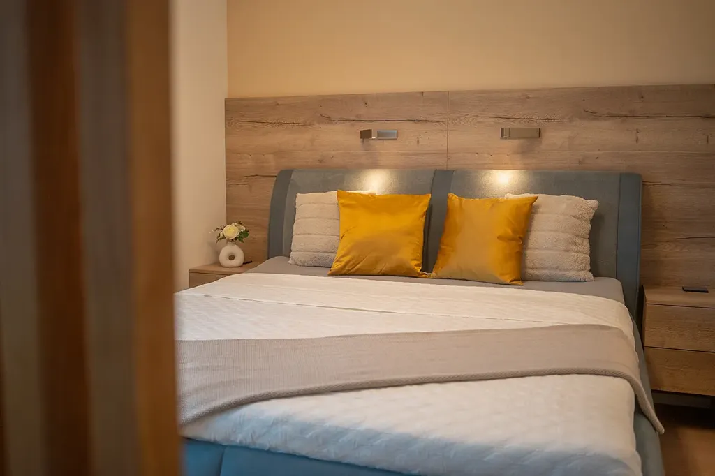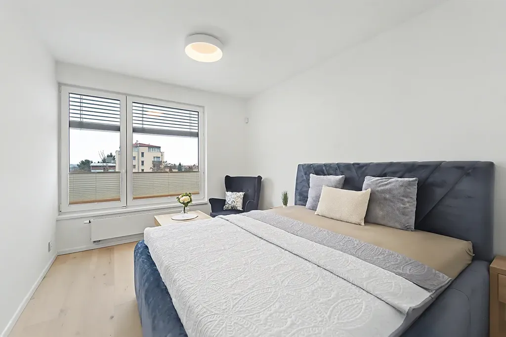 Útulná ložnice (16,74 m²) s důrazem na design doplněná o soukromou šatnu pro maximální komfort.