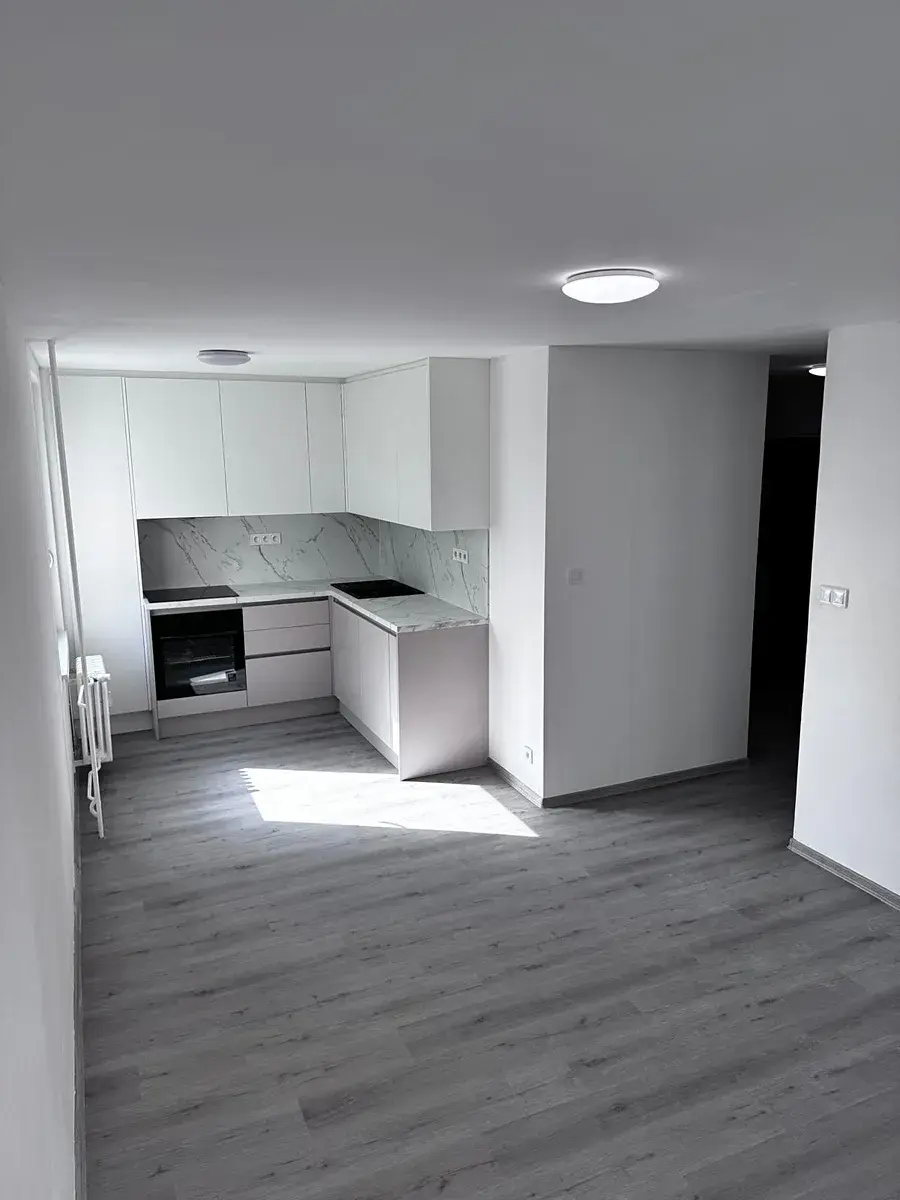 Byt je po kompletní moderní rekonstrukci – nová kuchyň na míru, nové podlahy, elektřina, koupelna, dveře i vestavěná skříň.