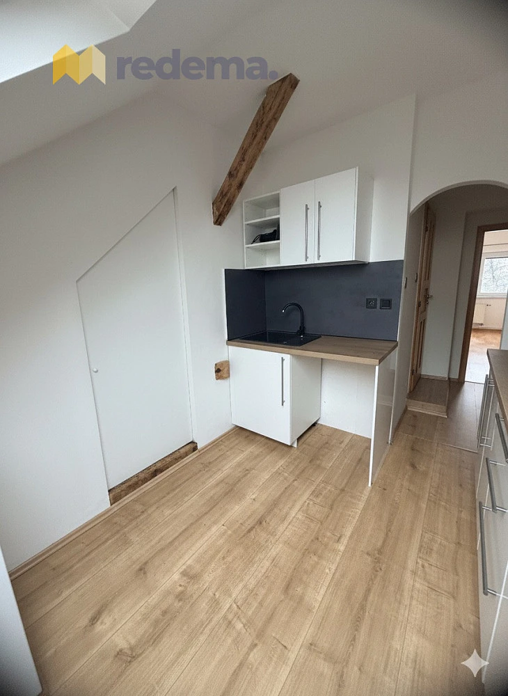 Byt o celkové ploše 79,4 m² prošel velmi zdařilou a citlivou rekonstrukcí, která kladla důraz na zachování útulnosti podkroví při zachování moderních standardů. Interiér působí velmi vzdušně a díky orientaci a střešním oknům je po celý den zaplaven přirozeným světlem.