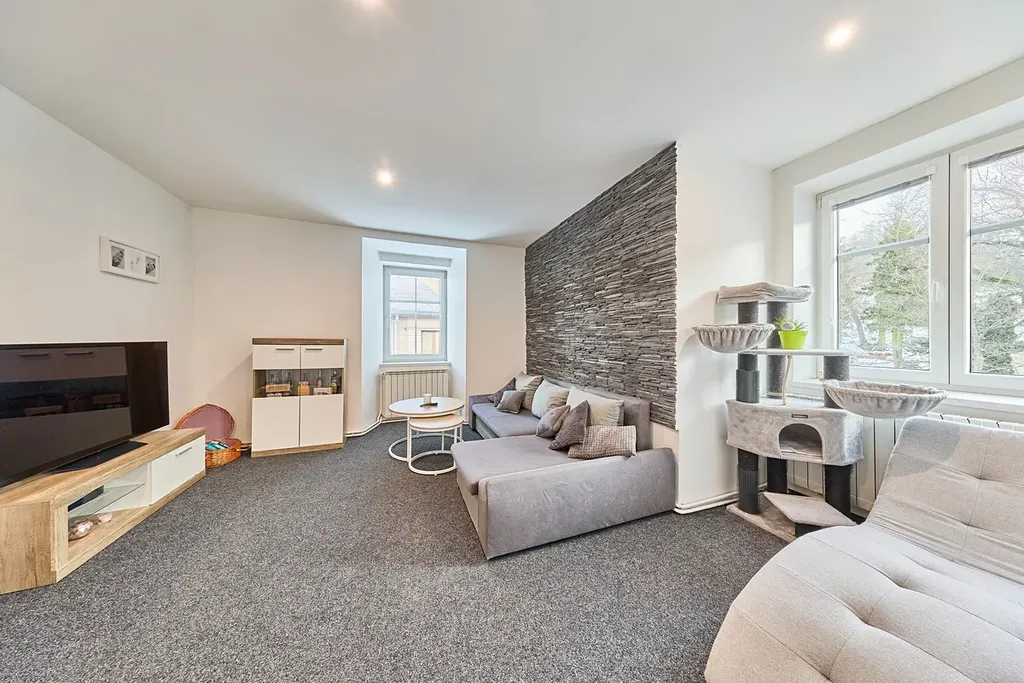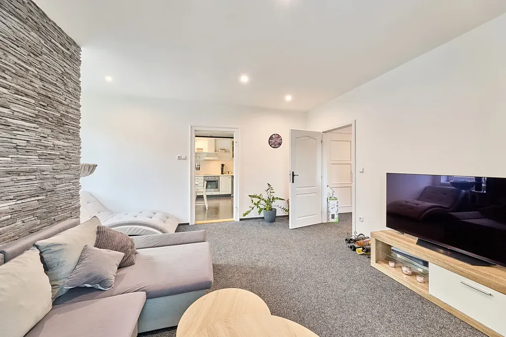 Ideální bydlení pro rodinu díky velikosti bytu a možnosti využívání zahrady.