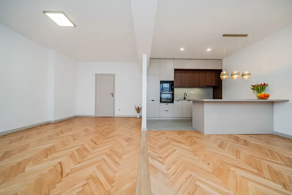 Z původního 2+1, došlo změnou dispozice a nákladnou rekonstrukcí ke změně na 2+kk. Dominantou bytu je prostorný obývací pokoj propojený s moderní nadstandardní kuchyní s ostrůvkem. Kuchyňská linka se zabudovanými spotřebiči je zhotovena na míru. Součástí je zabudovaná lednice s mrazákem, myčka, indukční varná deska, digestoř, mikrovlná trouba. Kuchyně ve velmi prostorná s dostatkem úložných prostor. Je zde prostorný ostrůvek s pracovní deskou. V části bytu se podařilo zachovat původní parkety, které prošly renovací. Zbývající část podlah je pokrytá dlažbou (chodba, část kuchyně, koupelna a wc), v ložnici je pak plovoucí podlaha s dekorem parket. Byt má nové rozvody, vstupní i interiérové dveře. Koupelna je zděná, s novými velkoformátovými obklady, sprchovým koutem, umyvadlem, koupelnovým nábytkem i žebříkovým topným tělesem. Toaleta s obklady a novou sanitou je samostatná. V chodbě se nachází vestavěná skříň s prostorem a připojením pro pračku. Ložnice je směřovaná do vnitrobloku, takže se není třeba bát ruchu ulice. Výhodou je možnost parkování v právě zmiňovaném vnitrobloku. Vchod do domu je z obou stran. Rekonstrukce byla dokončena v lednu 2026, takže je byt připravený k okamžitému nastěhování. Díky nízkým nákladům na bydlení je vhodný jak pro bydlení tak i jako investice. Fond oprav je ve výši 1.220,-Kč a náklady celkem včetně fondu 3.270-Kč. Veškerá občanská vybavenost je v dosahu. K bytu patří sklepní kóje. Parkování je možné také v ulici před domem. Byt lze financovat hypotečním úvěrem. Pro více informací mne prosím kontaktujte.