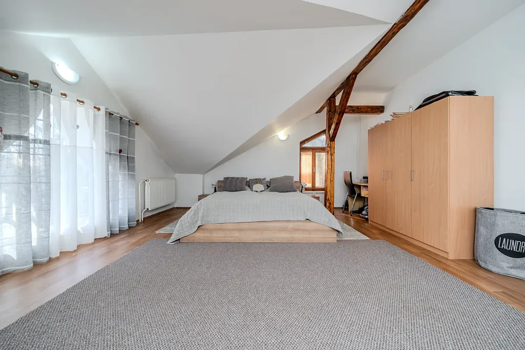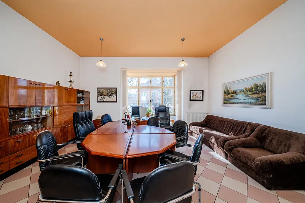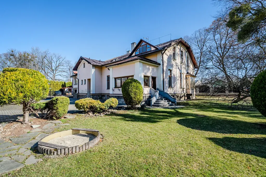 V zastoupení majitele nabízím k prodeji prvorepublikovou vilu z 1904 roku v blízkosti centra Karviné. Dům je rozdělený na obytnou část se samostatným vchodem a komerční prostory momentálně využívány jako sídlo firmy a kanceláře včetně podkrovního bytu s dalším vchodem. Půdní byt je s dispozicí 3+kk, o ploše 177m2. Jedná se o prostorné, půdní prostory s šikminou. Tvoří ho obývací pokoj s kuchyňským koutem a krbem, dětský pokoj, ložnice, koupelna s vanou a sprchovým koutem a samostatná toaleta. Spodní patro (233m2) tvoří konkrétně 4 kanceláře, kuchyňka v mezipatře, zimní zahrada pro příjemné pracovní prostředí, dámské a pánské toalety, archív. Služební byt (v minulosti určený pro služebnictvo) zahrnuje pokoj, koupelnu se sprchovým koutem a toaletou. Prostory byly v roce 2005 částečně rekonstruovány. V celém domě jsou nové rozvody elektra. Spodní patro je vhodné jako sídlo firmy, ordinace – kanceláře jsou prostorné, s chodbou, která může sloužit jako čekárna. Velkou výhodou je dvůr, který řeší otázku parkování.
