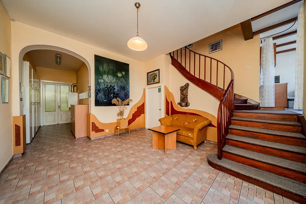 Jedná se o patrový, nezateplený dům s větší části s novými okny. Střecha domu je sedlová, pokrytá plechovou krytinou. Dům je částečně podsklepený. Je napojený na obecní kanalizaci. Vytápění je řešeno dvěmi plynovými kotly. Voda je také rozdělena (2x hodiny). Jak komerční prostory tak i byt mají vstupní haly s dřevěným schodištěm. Okolo domu je prostorná, udržovaná, zatravněná zahrada. Na ni nalezneme okrasné jezírko a křoviny, krytou pergolu s posezením a bazén. Nachází se zde také 4 řadové garáže (z toho jedna dvojgaráž). Garáže mají sedlovou střechou, navedenou elektřinu i vodu. Ve dvoře lze zaparkovat 8-10 osobních automobilů. Jsou zde tedy velké možnosti parkování. Kombinace bydlení a podnikání činí z této nemovitosti zajímavou investiční nabídku s historickými prvky. Nemovitost je vedená jako rodinný dům. Zastavěná plocha a nádvoří činí 983m2 a zahrada má výměru 1166m2. Nemovitost není zatížena hypotečním úvěrem. Více informací zodpovím na osobní prohlídce nebo telefonicky.