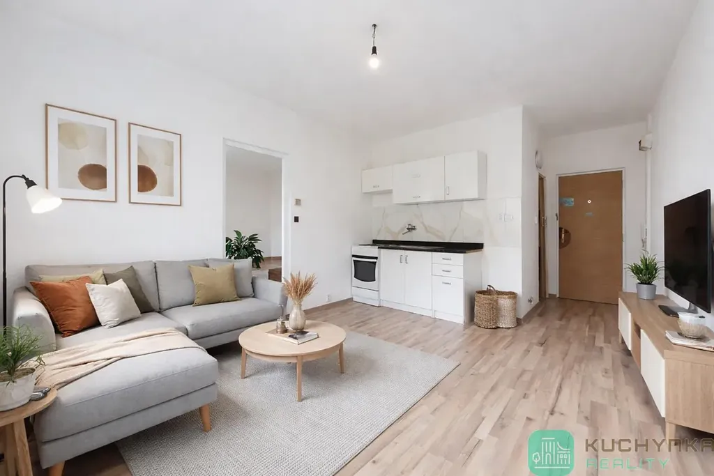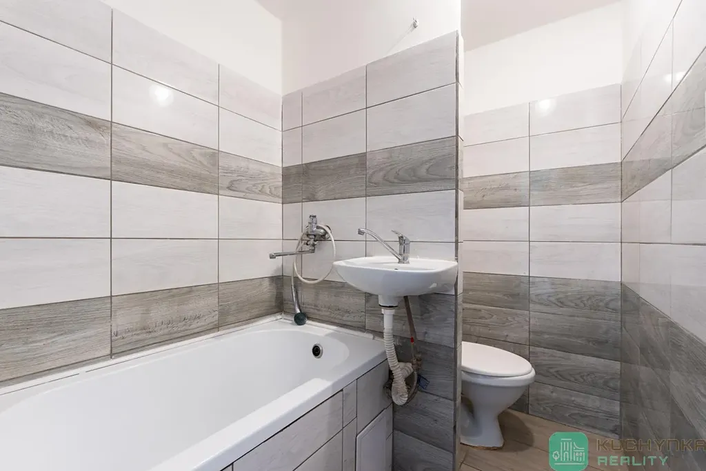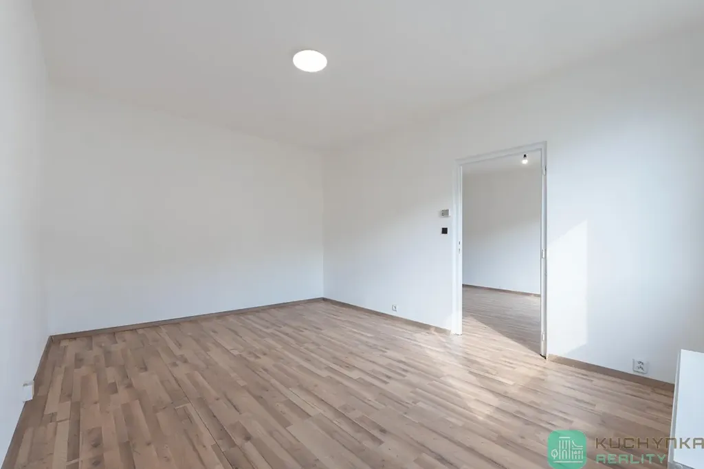 Byt má dispozičně 2 obyvatelné místnosti, menší vstupní chodbu a koupelnu s toaletou. Byt je po částečné rekonstrukci, která zahrnovala štukování, plovoucí podlahy, koupelnu s obklady lepenými na sádrokarton.