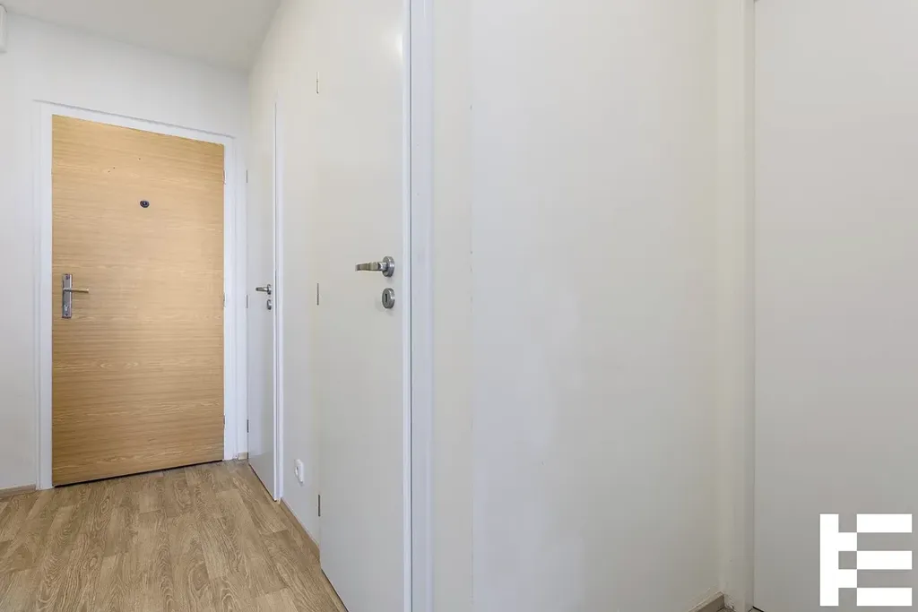 Byt, který je umístěný v 11.NP s výtahem, disponuje příjemným a světlým obývacím prostorem s kuchyňským koutem. Kuchyň je osazena sklokeramickou deskou, troubou, myčkou a digestoří. Koupelna nabízí možnost umístění pračky. Samostatná toaleta. Na chodbu lze umístit úložné skříně a komody.