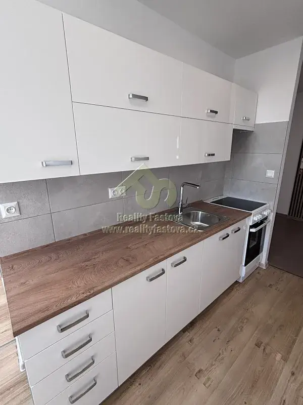 V kuchyni je k dispozici nová kuch.linka s dřezem a el.sporákem s el. troubou. V celém bytě jsou položena lina, do pokojů osazeny nové dveře, nová výmalba stěn a plastová okna.
