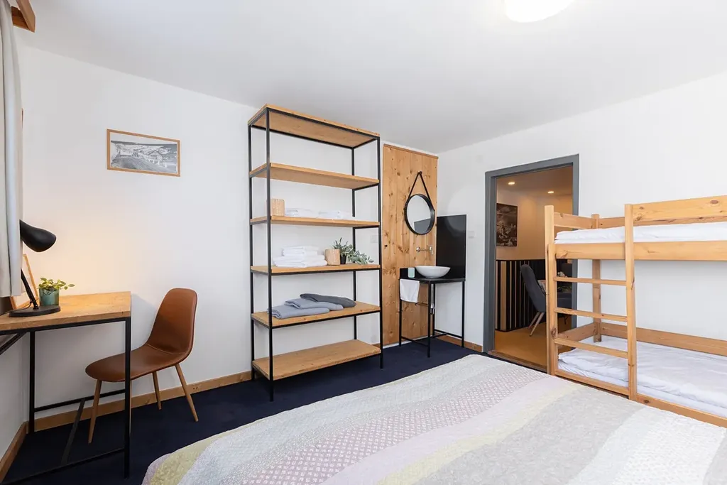 Roubenka, která dostala na frak zejména v dobách minulého režimu, nyní poskytuje soudobý komfort všem hostům. Apartmán 4+kk byl zamýšlen pro vlastní využití majitele domu, přidružen tak k němu byl jihovýchodní výklenek se 4 okny a dechberoucím výhledem do údolí. Prostor jídelny, obýváku a kuchyně doplňuje krb, ovšem primárním systémem vytápění je tepelné čerpadlo umístěné za chalupou. V této části domu jsou pak 3 další ložnice a dvě koupelny, přičemž jsou k dispozici dva samostatné vstupy.