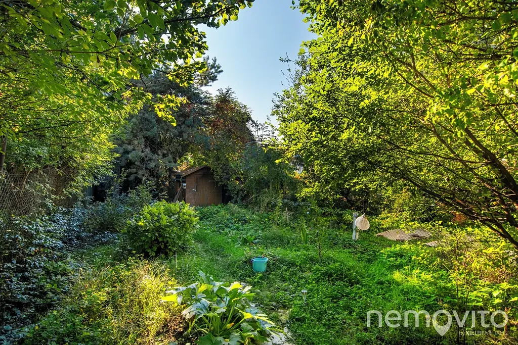 Zahrada je orientovaná na jihovýchod a nabízí příjemné soukromí i místo pro relax díky spoustě zeleně. Najdete na ní pár starších záhonů a dřevěný domek na úschovu zahradního vybavení.