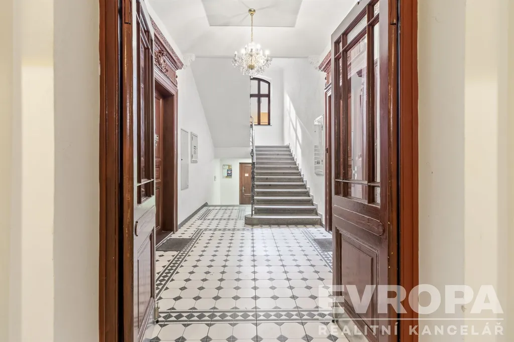 V bytě je k dispozici také sklípek, což je ideální pro úschovu věcí, které nechcete mít neustále na očích. V budově jsou krásné a udržované společné prostory, které umocňují celkové kouzlo této historické a zrekonstruované budovy.