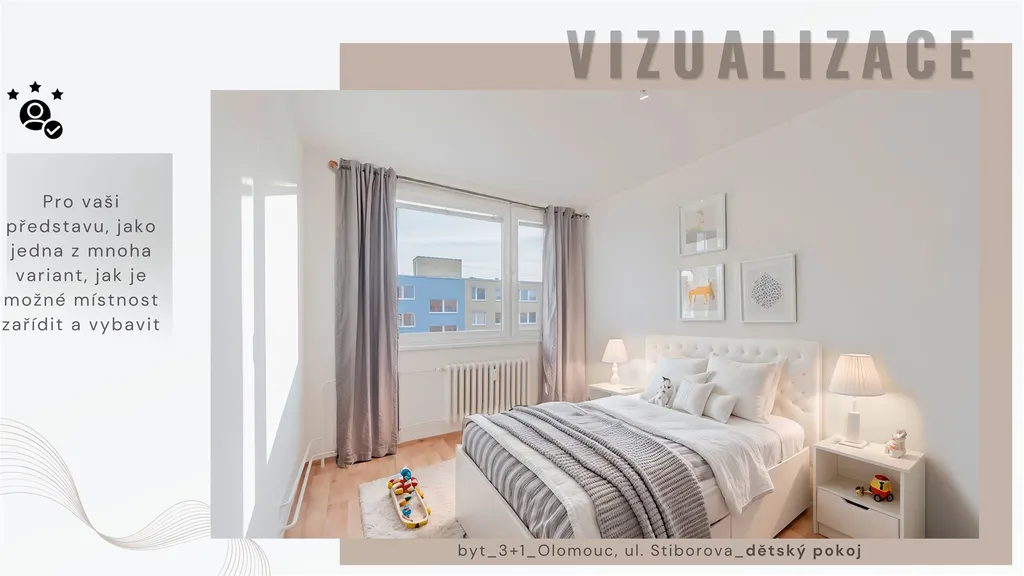 Velmi pěkný byt s dispozicí 3+1, který se nachází v 7. patře panelového bytového domu s výtahem. Dům se nachází v klidné části města Olomouce oblíbené části Neředín.