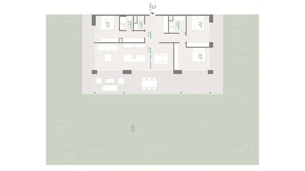 Společně se zkušenými architekty se podařilo vytvořit moderní budovy a velkou mírou prosklení. Navazující okolní zahrada se stane komunitním místem pro všechny majitele bytu. Parkovací místa jsou naprojektována pod budovou a vás tak nebude rušit pohled na stojící vozidla.