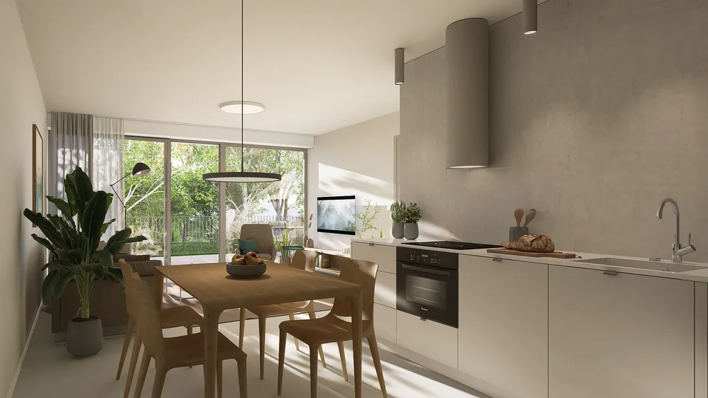 Společně se zkušenými architekty se podařilo vytvořit moderní budovy a velkou mírou prosklení. Navazující okolní zahrada se stane komunitním místem pro všechny majitele bytu. Parkovací místa jsou naprojektována pod budovou a vás tak nebude rušit pohled na stojící vozidla.