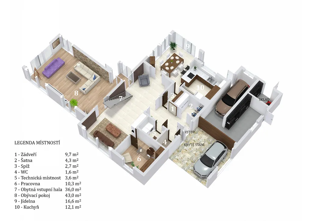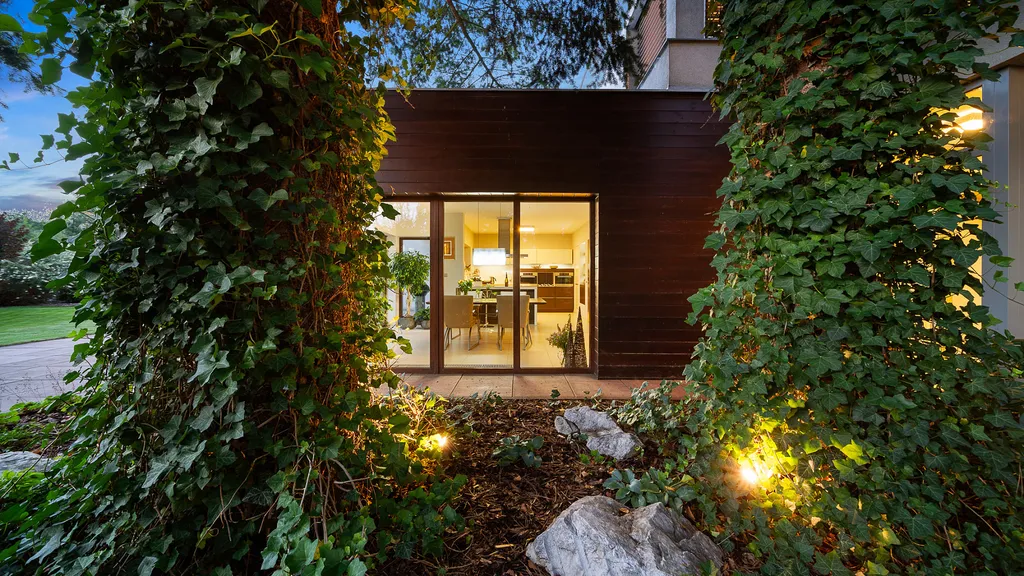 Každý člen vaší rodiny zde najde svůj malý kousek vesmíru. Propojení života s přírodou tady ucítíte všemi smysly. Jezírko se zvukem padající vody, stromy rostoucí do nebe, okouzlující výhledy z každé části domu ve vás vyvolají netradiční proud emocí a klidu.
